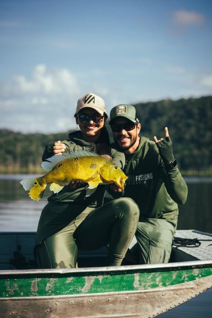 O Ponto de Partida: O Presente da Família Nakamura – todo grande projeto tem um marco zero. Para o casal, esse momento veio através de um presente especial da lendária Família Nakamura: o Fishing Map Brasil (Mapa da Pesca Esportiva do Brasil). Este mapa não é apenas um guia, mas um desafio. Nele, estão listadas as 40 espécies de peixes mais emblemáticas para os pescadores esportivos. Com esse roteiro em mãos, Cadu e Lo iniciaram uma expedição épica por diversas regiões brasileiras, misturando: