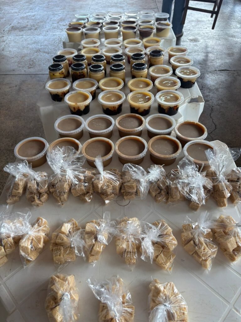 Outro destaque do curso foi a produção do doce de leite de corte, nas versões tradicional, prestígio e amendoim, que integrou as atividades práticas e despertou grande interesse entre os participantes.