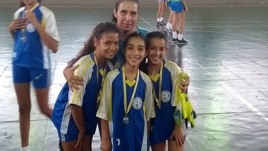 Conciliar a rotina profissional com a vida familiar sempre foi um desafio. Atuando em três escolas e com filhas pequenas, a professora contou com o apoio da família e a confiança dos pais dos atletas para seguir com dedicação total ao esporte.